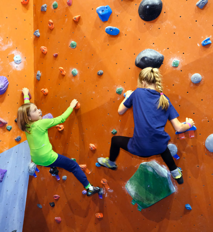 Zin om daarna zelf naar boven te klimmen? Dat kan op de BRICKS-route van de boulderwand: een speelse uitdaging waarbij durf, evenwicht en concentratie centraal staan.